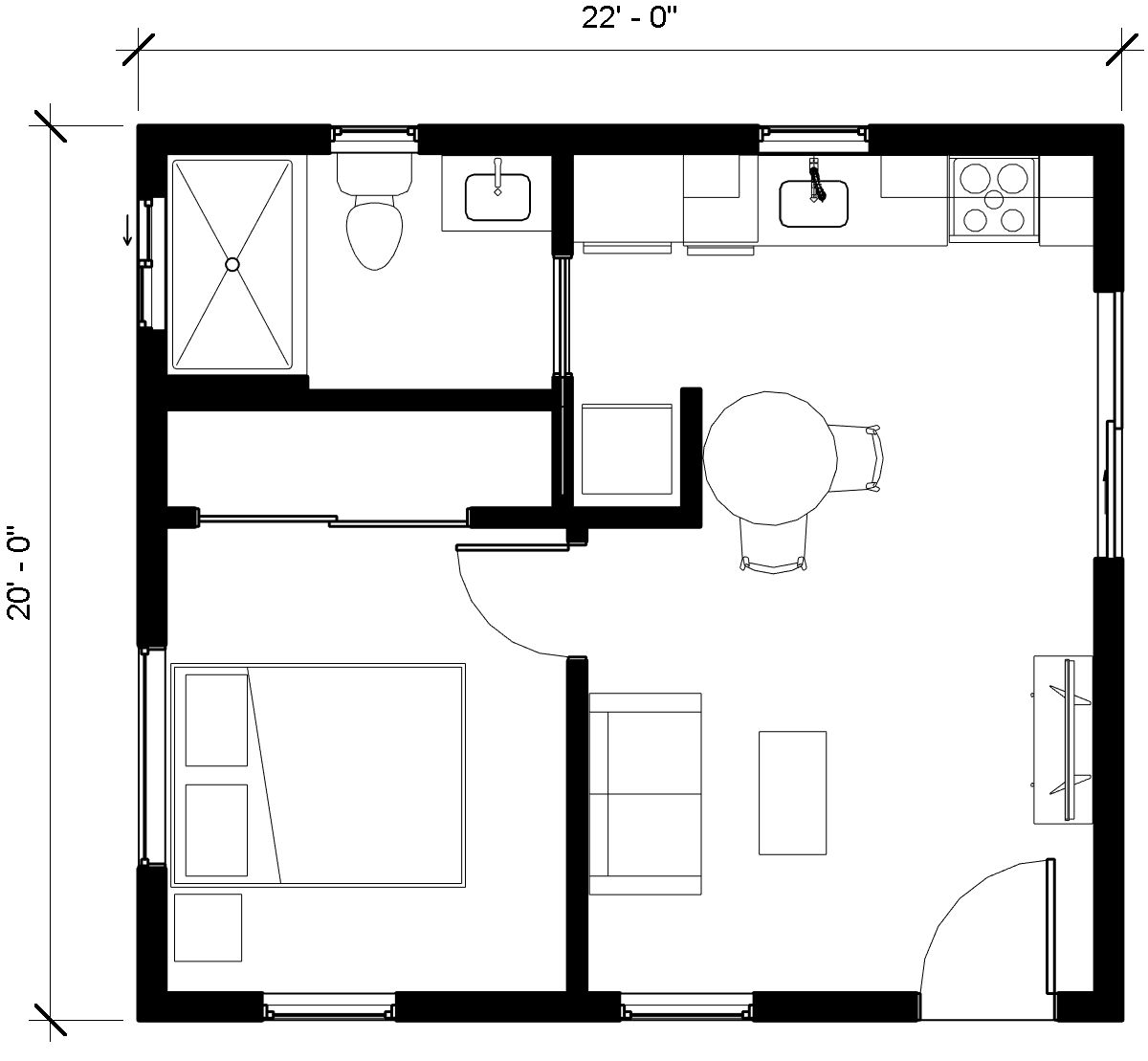 Our studio homes are the perfect option where the build-able area on the lot is limited. This floor plan is a great fir for a variety of uses such as a small home, guest house, work space, pool house or recreation room.